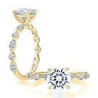 A.Jaffe - Diamond and 18K Yellow Gold Semi-Mount Engagement Ring With Alternating Marquise and Round Side Diamonds