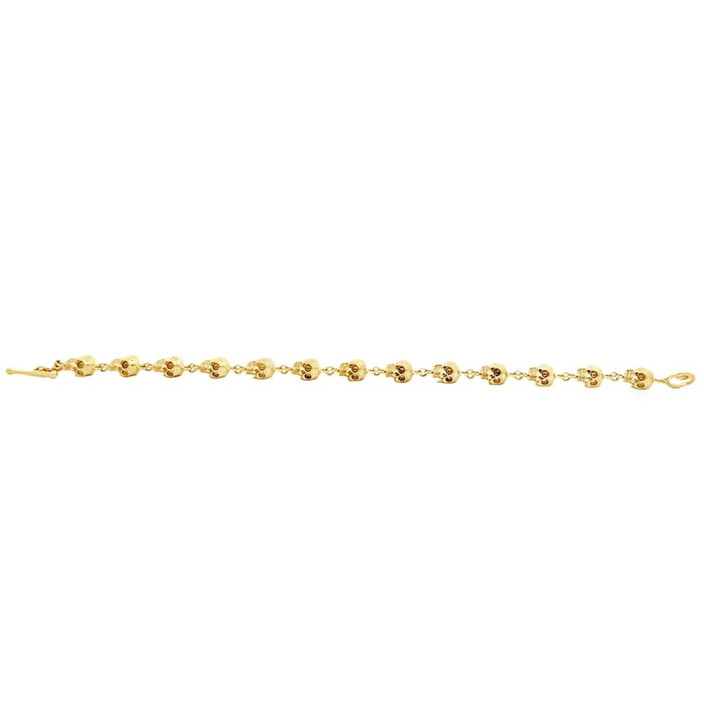 Erica Courtney - 18K Gold 13 Carved 8mm Skulls Toggle Clasp 7.5" Bracelet