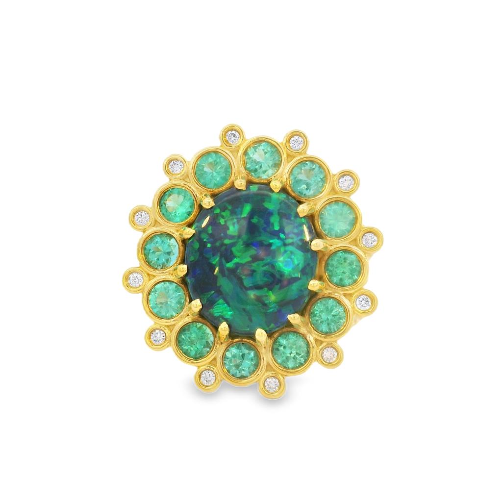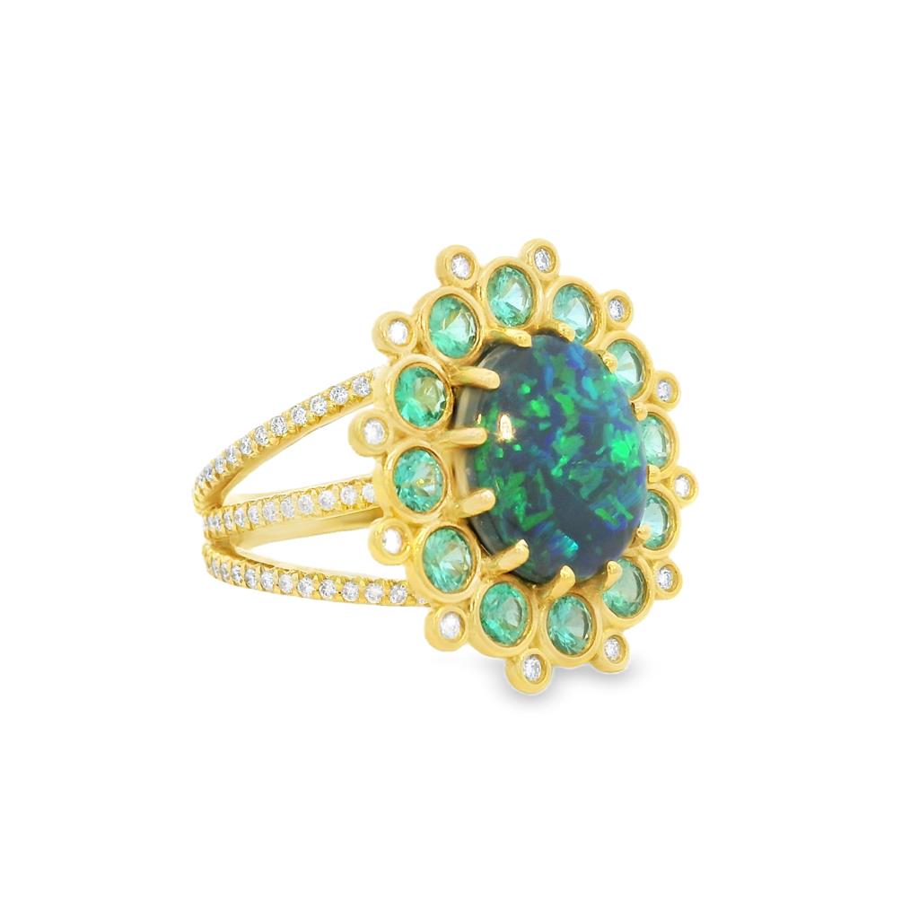 Erica Courtney - Australian Crystal Opal, Emeralds, Diamonds and 18K Gold "Cupcake" Ring