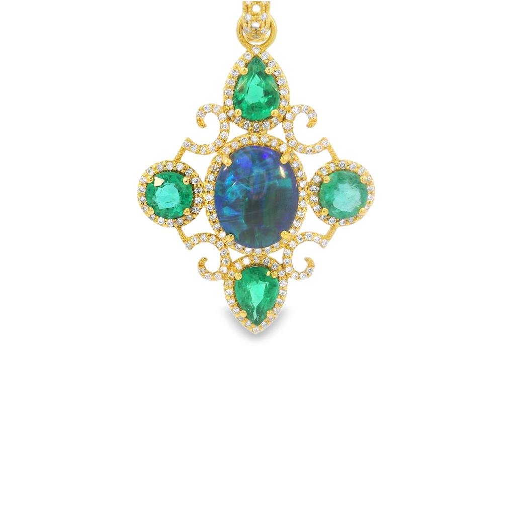 Erica Courtney - Australian Opal, Emeralds, Diamonds and 18K Gold Pendant