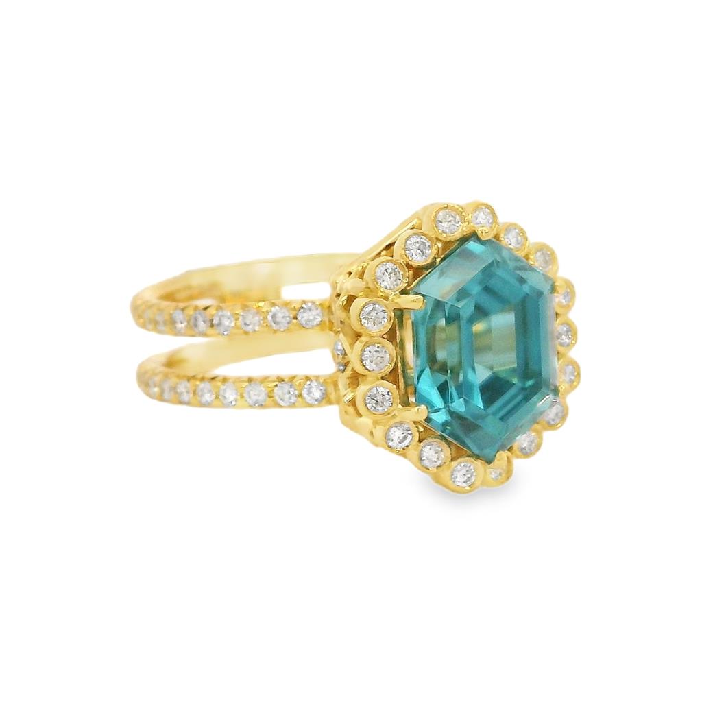 Erica Courtney - Blue Zircon, Diamonds and 18K Yellow Gold "Emily Ann" Ring