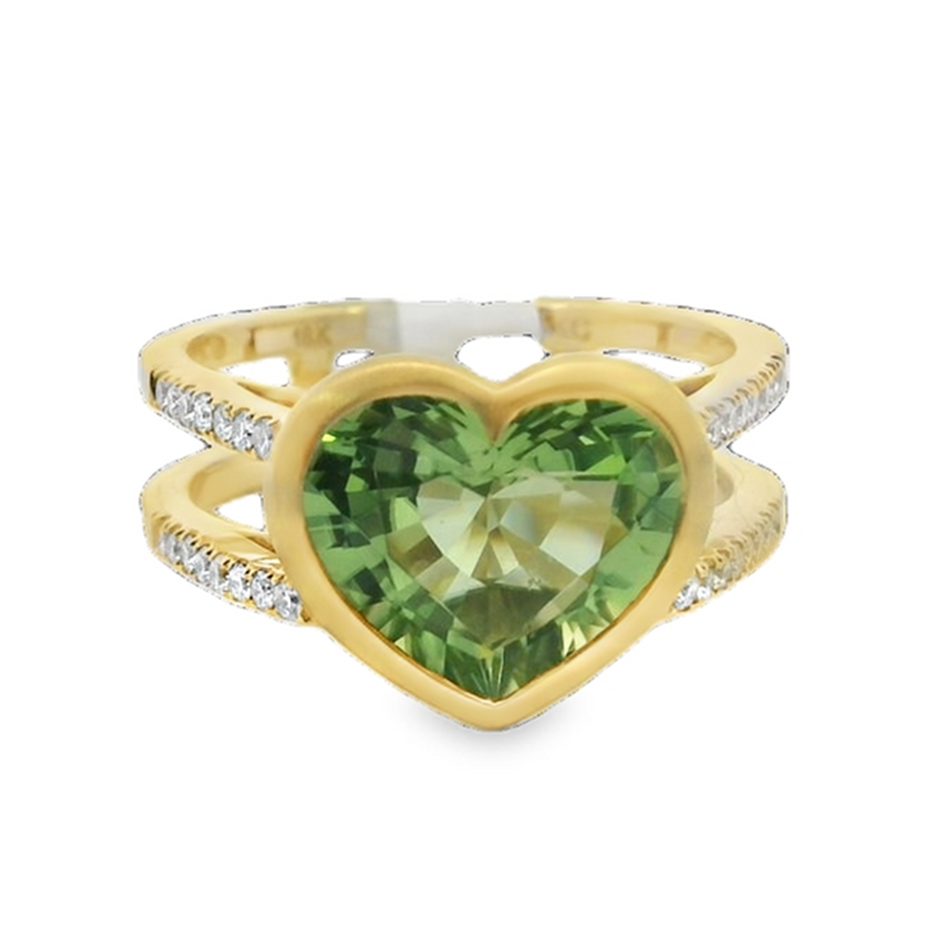 Kimberly Collins - Peridot and 18K Yellow Gold Split Shank Heart Shape Ring