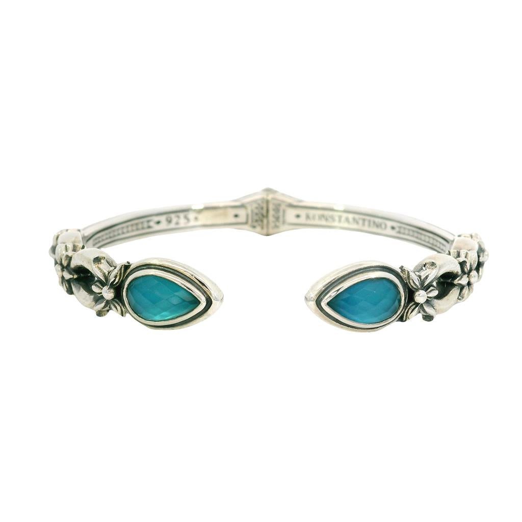Konstantino - Blue Marine Spinel, Rock Crystal and Mother-of-Pearl Triplet, Sterling Silver 6.5" Bracelet