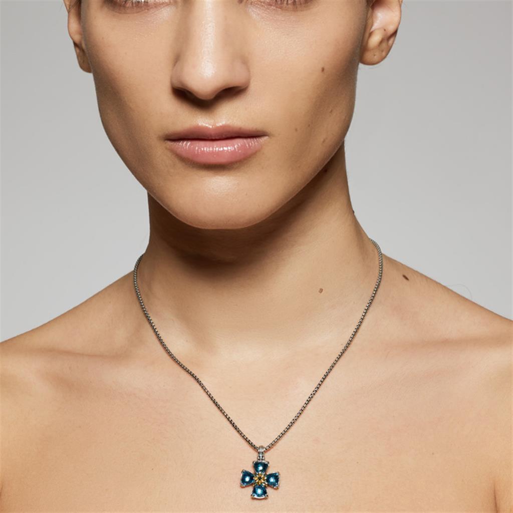 Konstantino - Blue Spinel, Black Diamond, Sterling Silver and 18K Gold "Anthos" Prism Cross Pendant