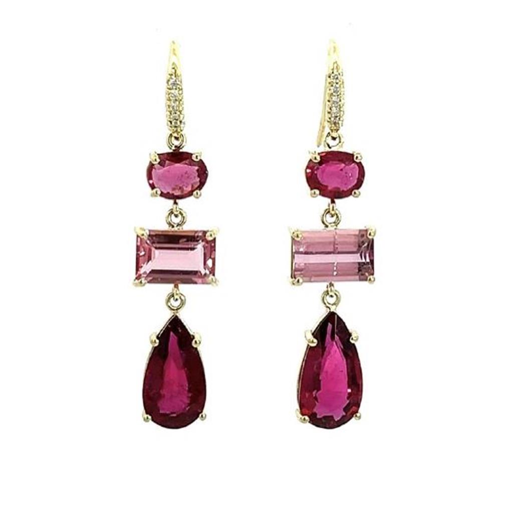 Lauren K - Mixed Shape Pink Tourmaline, Diamonds and 18K Gold 3-Stone "Joyce" Earrings