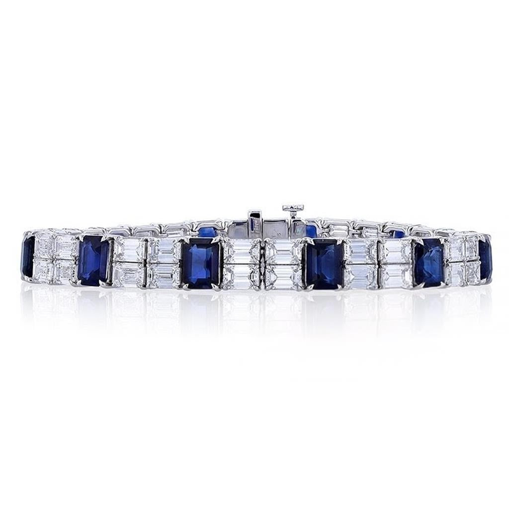 McCaskill & Company Signature Collection - Blue Sapphires, Diamonds and Platinum East/West Set 7" Bracelet