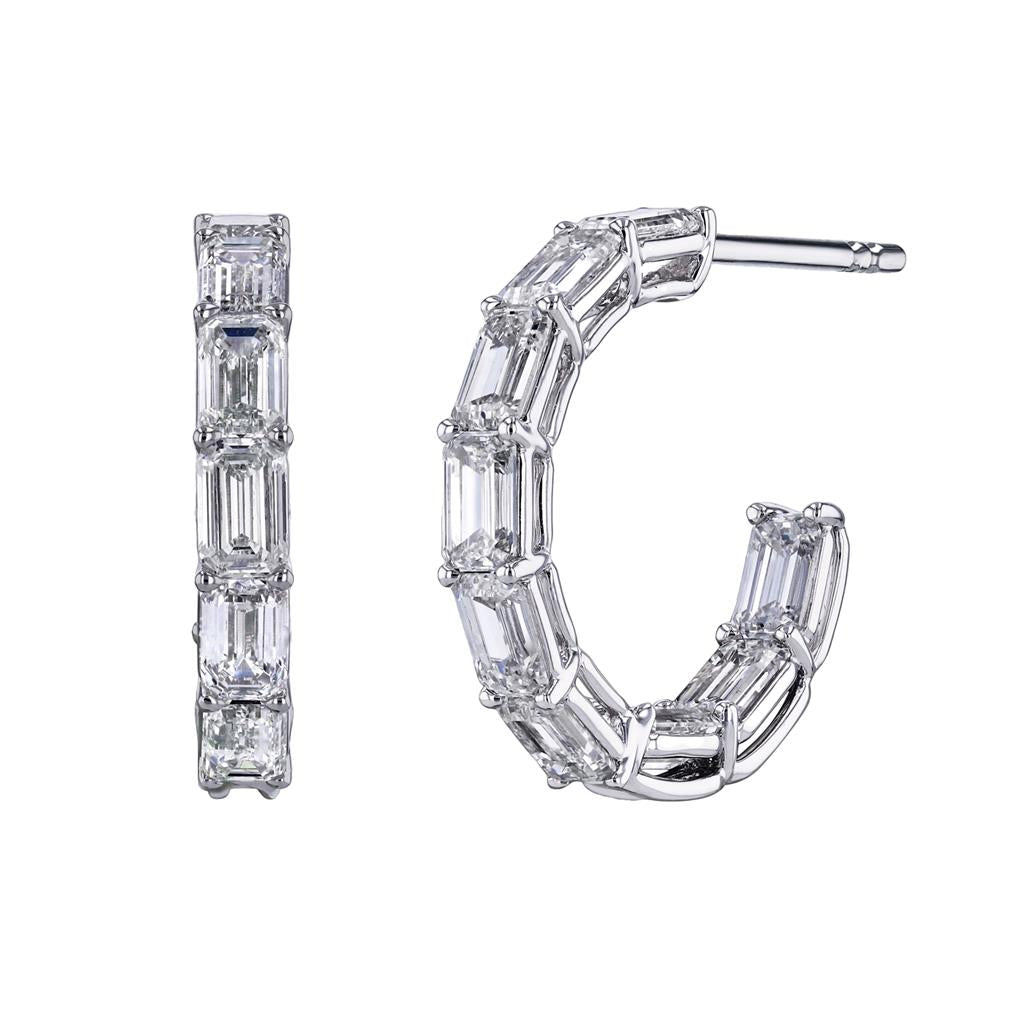 McCaskill & Company Signature Collection - Diamonds and 18K White Gold 3/4" North South Shared Prong Hoop Earrings