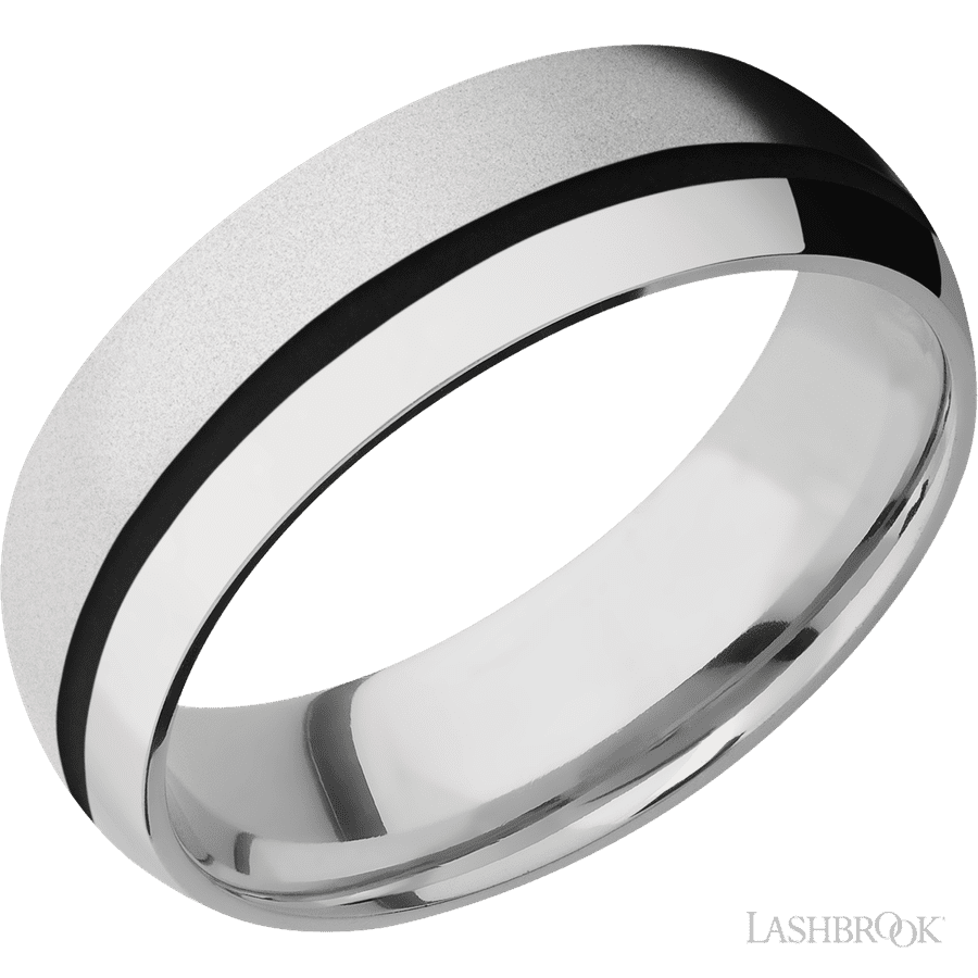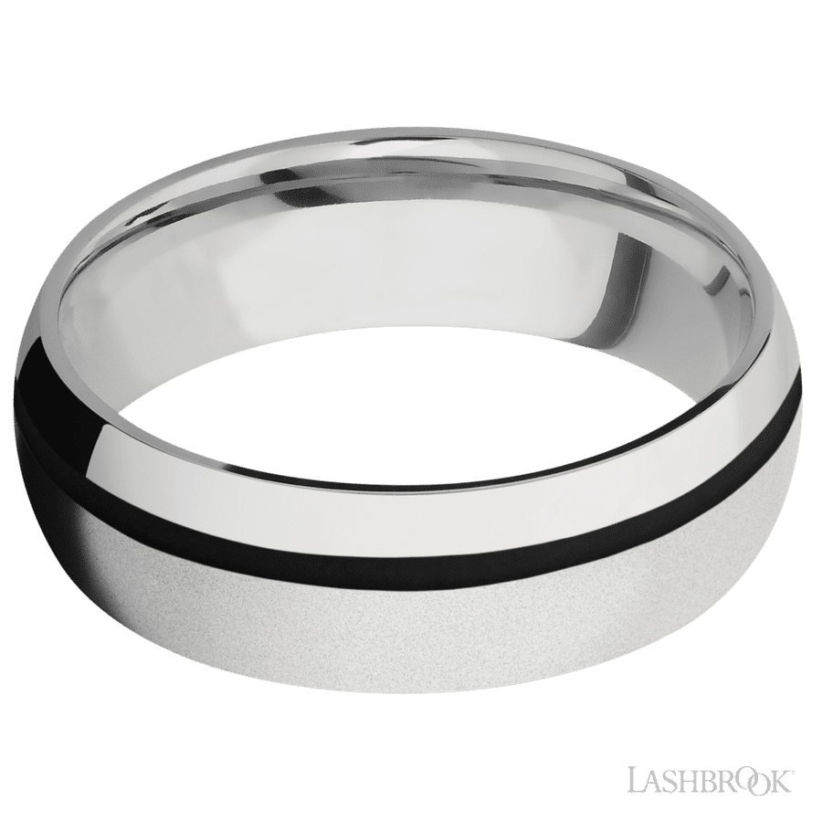 7 mm wide/Domed/Cobalt Chrome band with one 1 mm Off Center inlay of Black.
