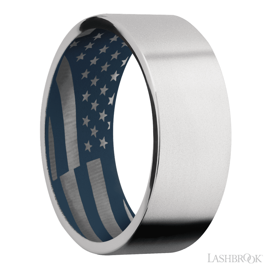 CC8FR 8 mm wide Flat Cobalt Chrome band featuring a Navy Blue sleeve.