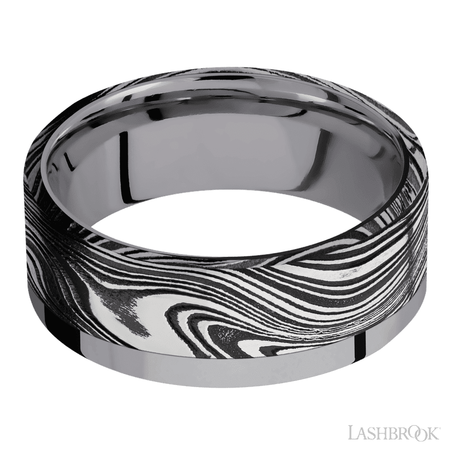 8 mm wide/Flat/Tantalum band with one 6 mm Off Center Edge inlay of Marble.