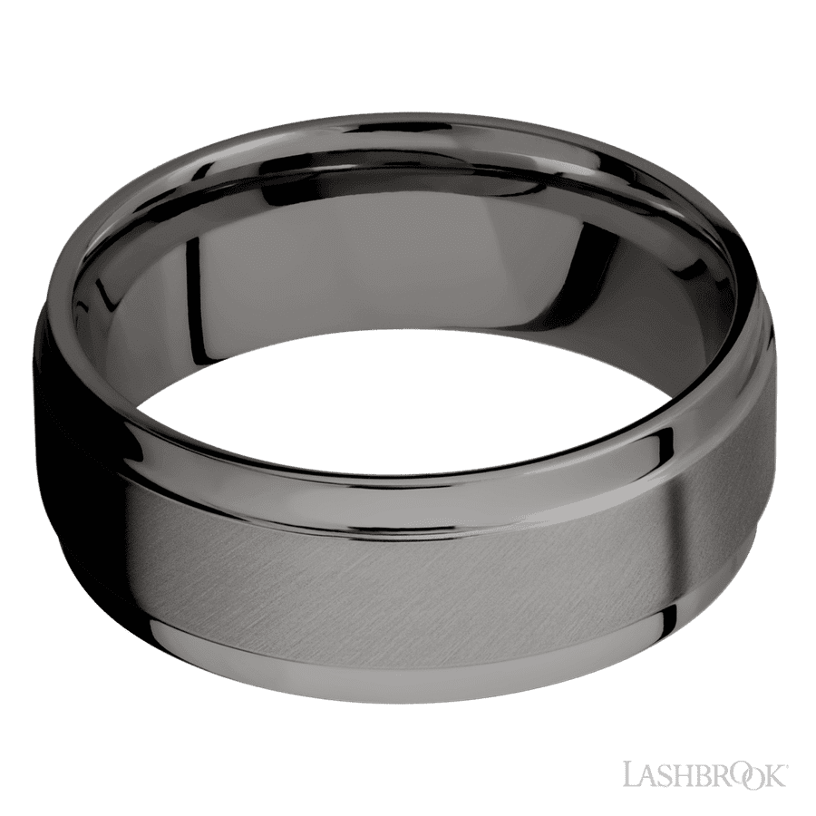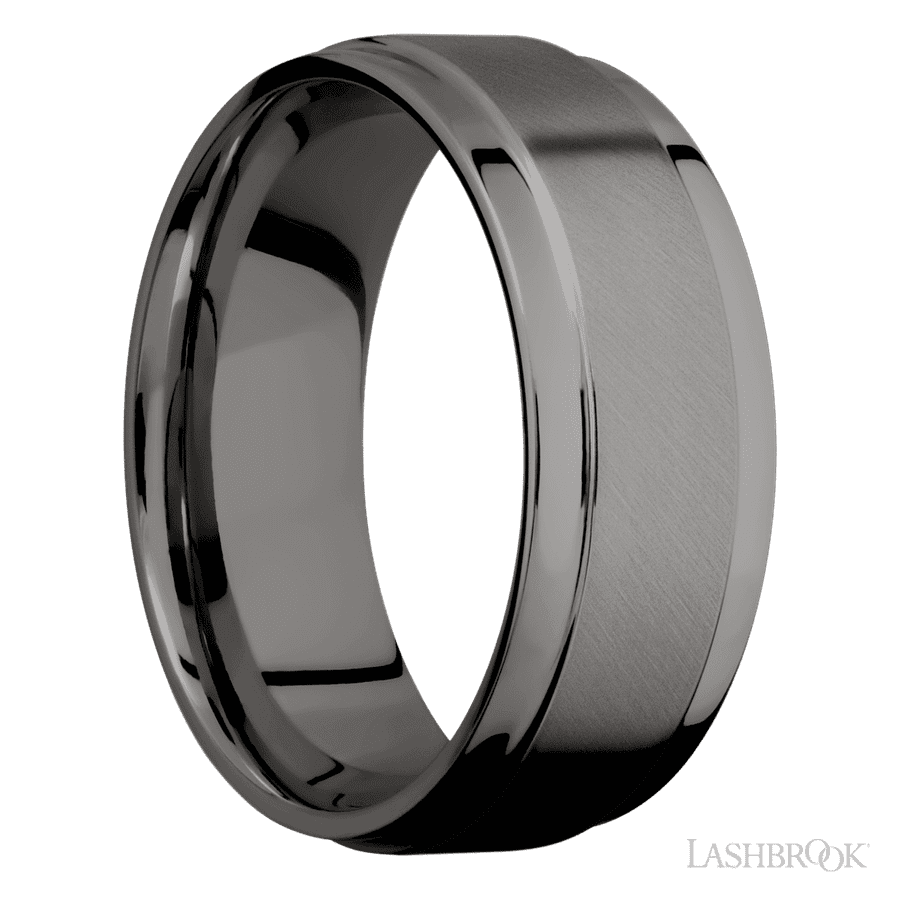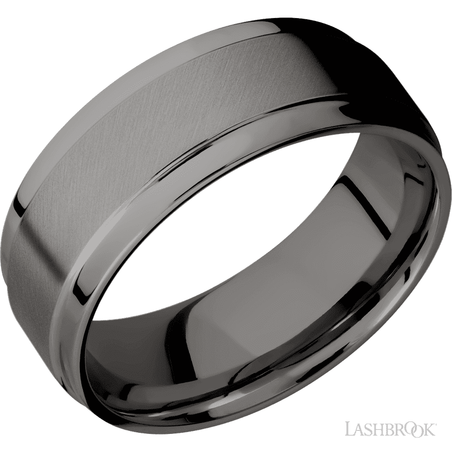 8 mm wide Flat Wide Grooved Edges Tantalum Noir band.