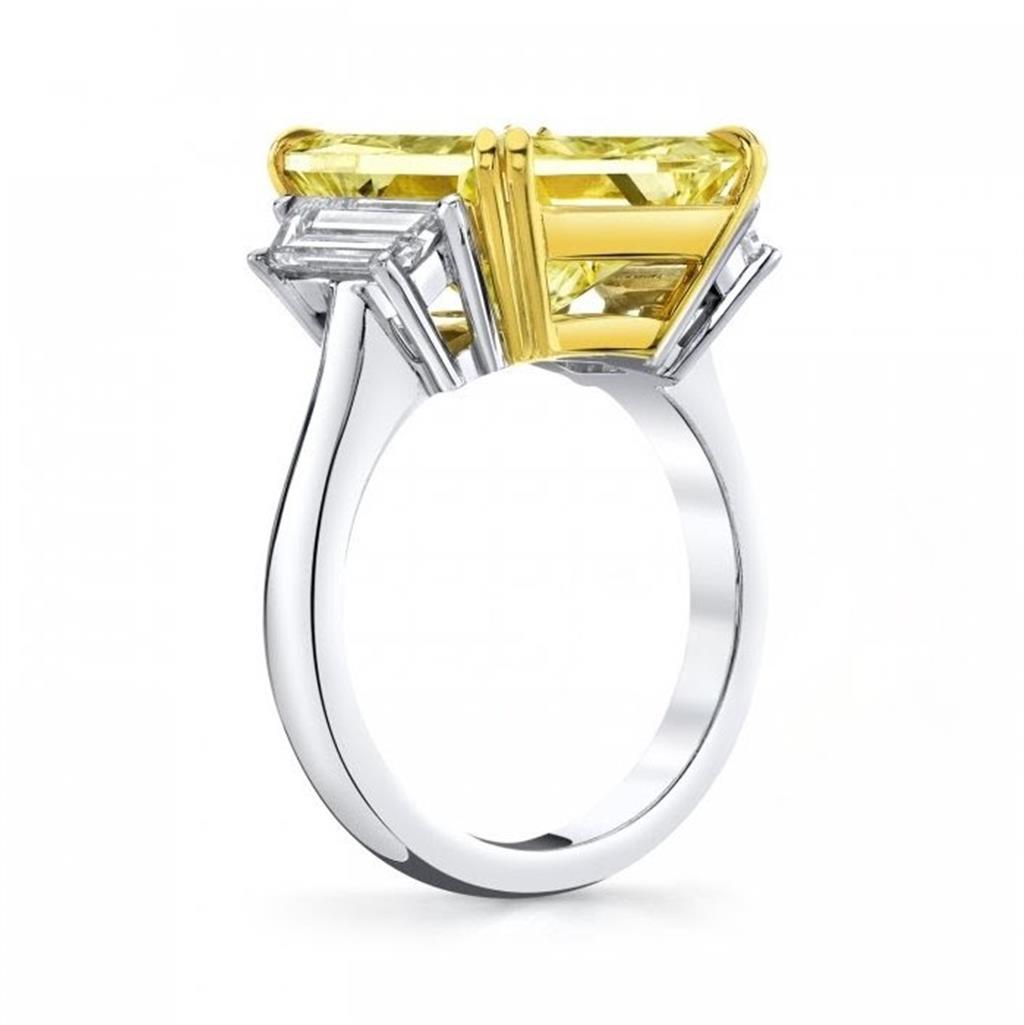 McCaskill & Company Signature Collection - Fancy Yellow Diamond. Diamonds, Platinum and 18K Yellow Gold Three Stone Ring