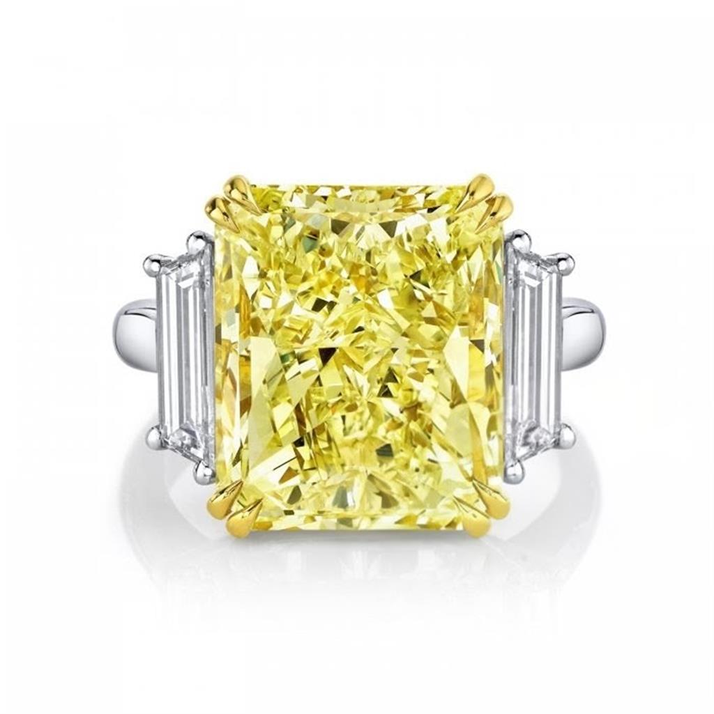 McCaskill & Company Signature Collection - Fancy Yellow Diamond. Diamonds, Platinum and 18K Gold Three Stone Ring