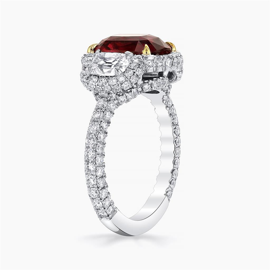 McCaskill & Company Signature Collection - Mozambique Ruby, Diamonds, Platinum and 18K Gold Three Stone Ring
