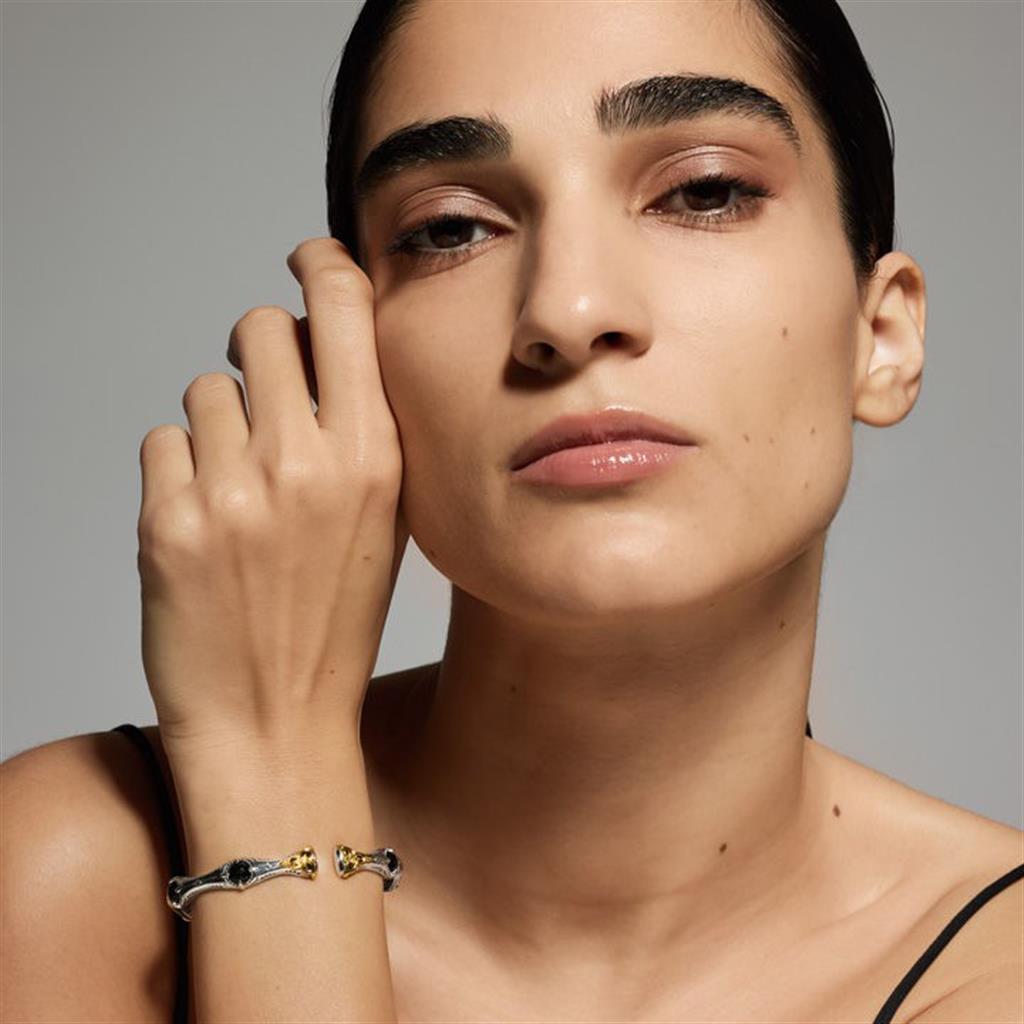 Konstantino - Black Onyx, Sterling Silver, and 18K Gold "Anthos" Wave Hinge Bracelet