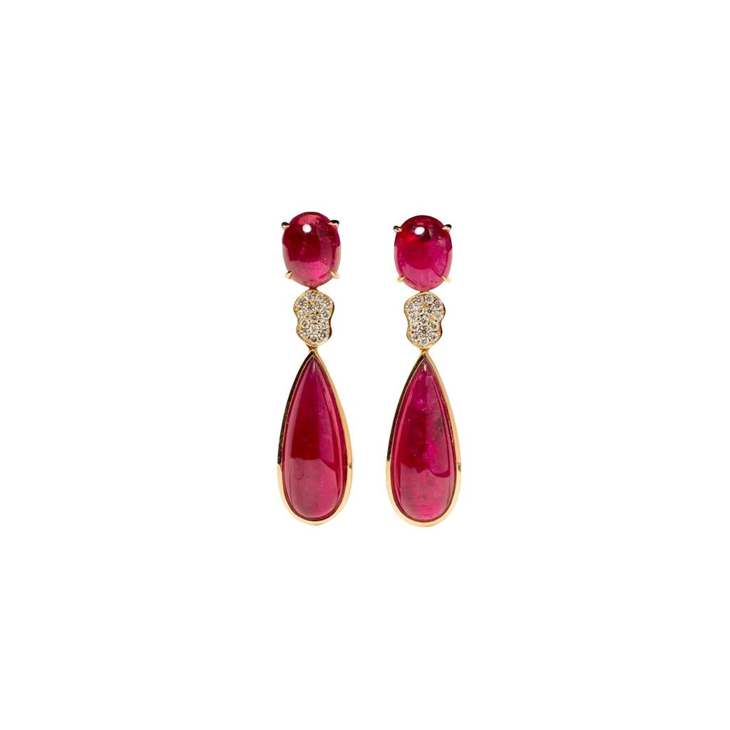 Kimberly Collins - Rubellite Tourmaline, Diamonds and 18K Gold Multi-Stone Dangle Earrings