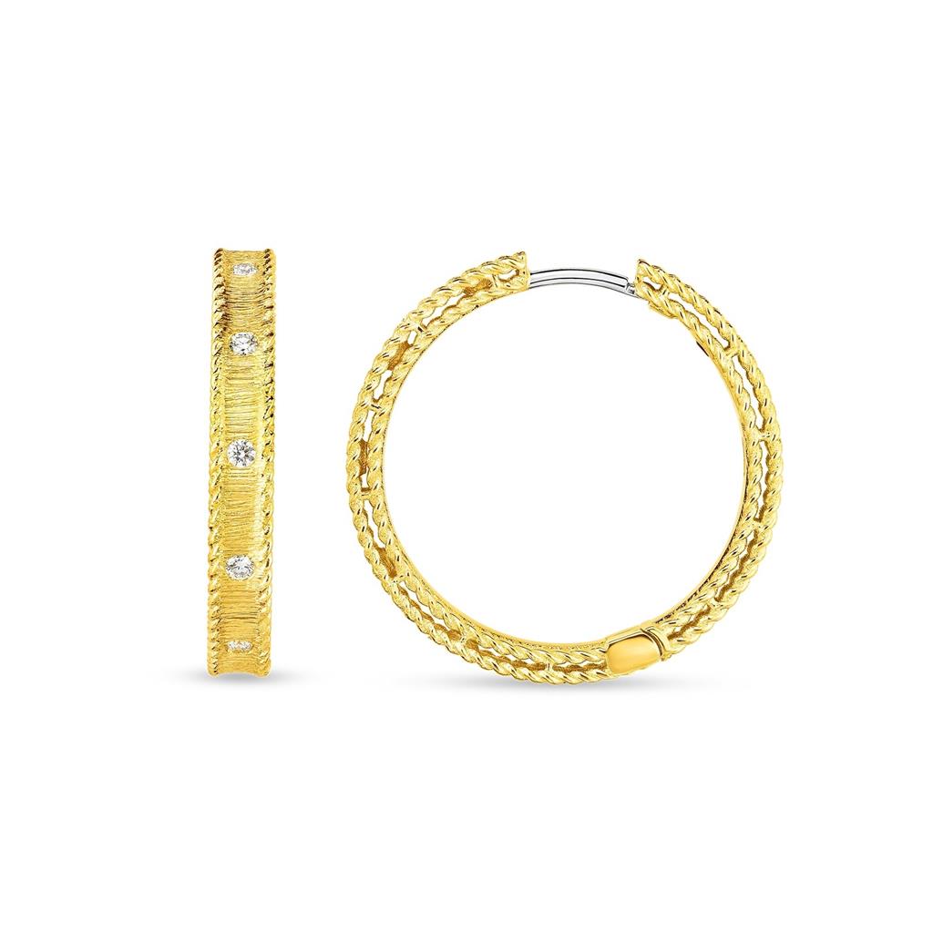 Roberto Coin - Diamond and 18K Gold "Princess" 20mm Hoop Earrings