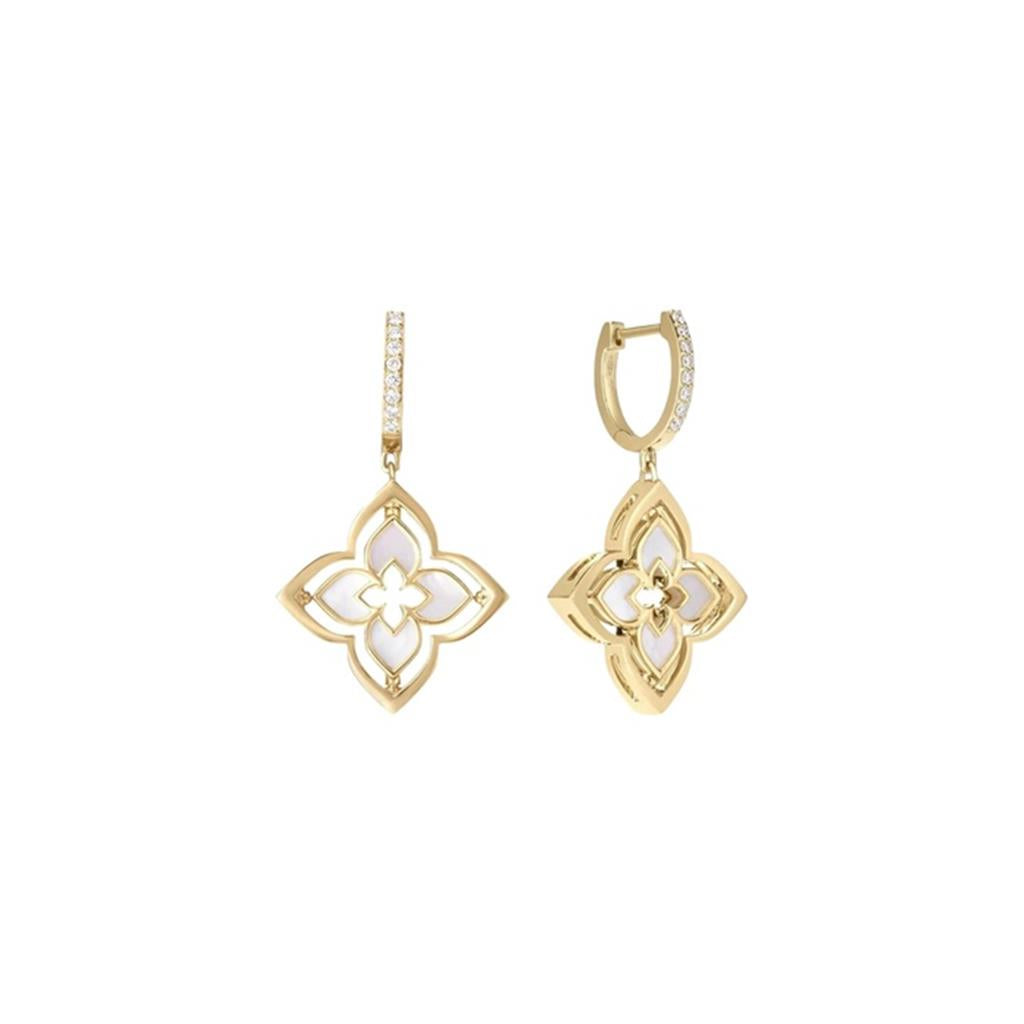 Roberto Coin- Diamond, Mother of Pearl, and 18K Gold "Venetian Princess" Reversible 'Pirouette' Pave Flower Drop Earrings