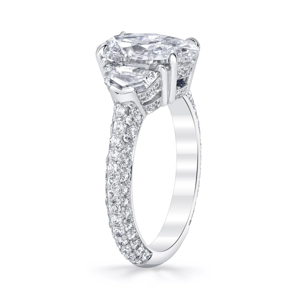 McCaskill & Company Signature Collection - Diamond and Platinum Three Stone Micro Pave Shank/Basket Detail Ring