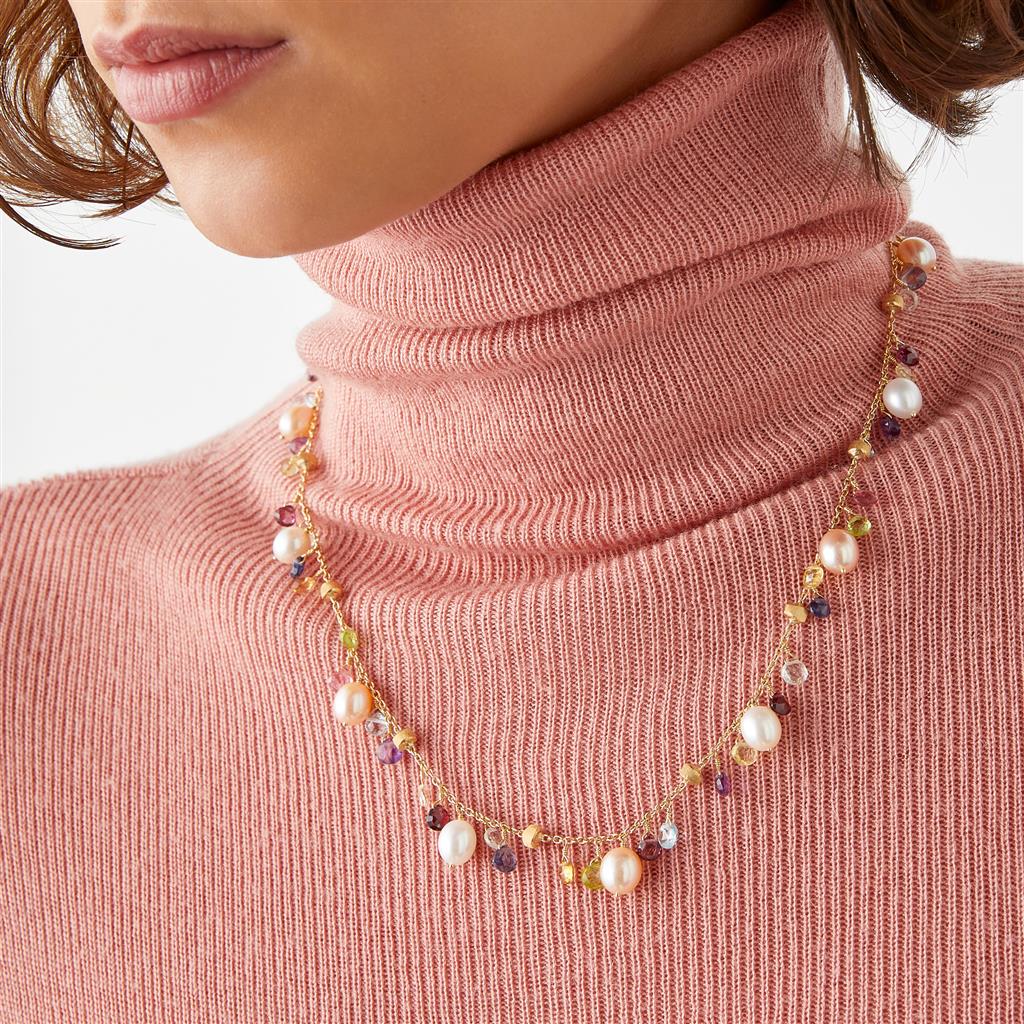 Marco Bicego - Mixed Gemstone, Pearl, and 18K Yellow Gold "Paradise" 16.5-18" Necklace