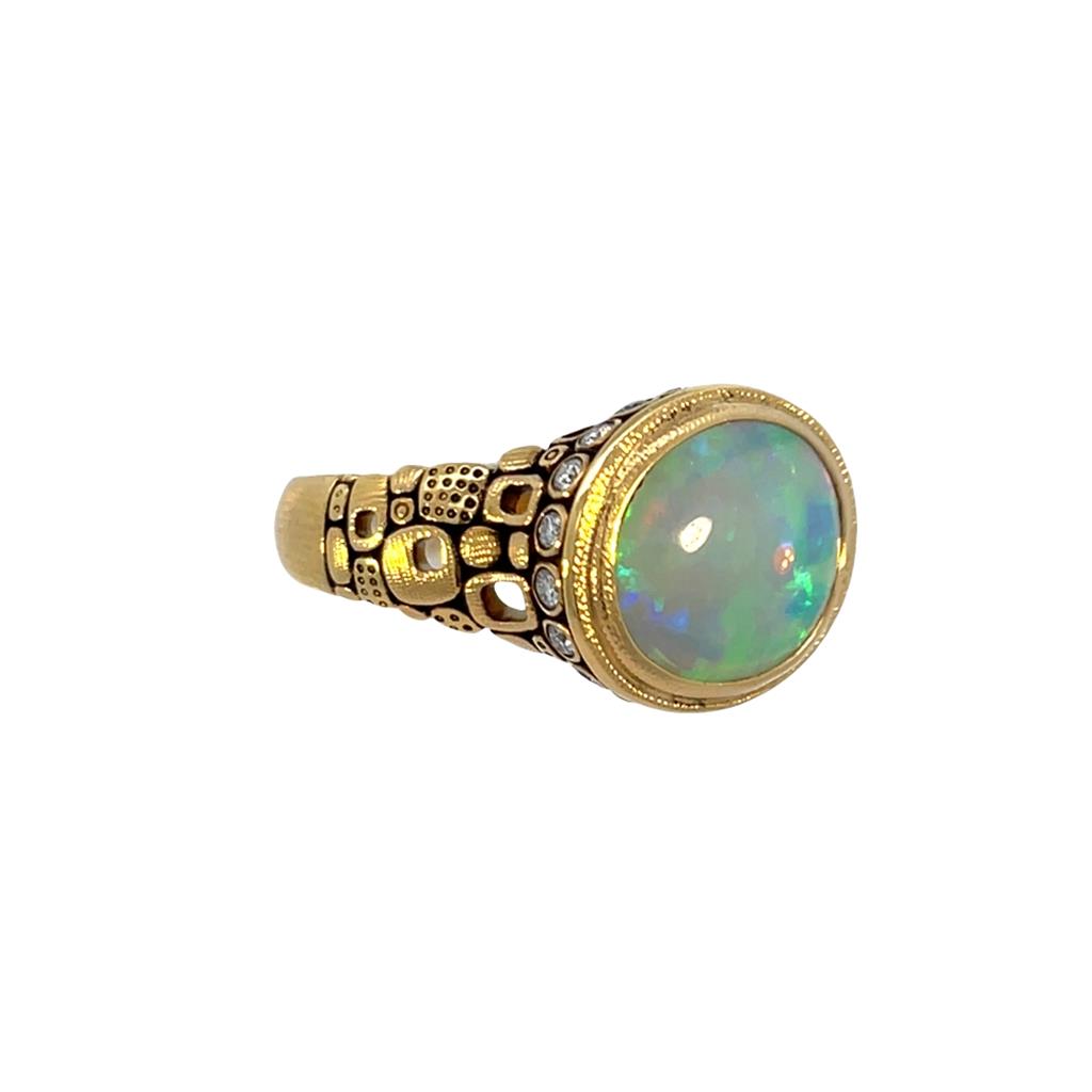 Alex Sepkus - Black Crystal Opal, Diamonds and 18K Gold "Little Windows" Ring