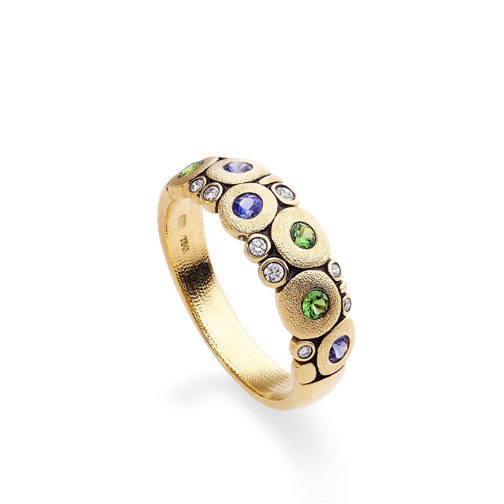 Alex Sepkus - Tsavorite, Blue Sapphire, Diamonds and 18K Gold "Candy" Dome Ring