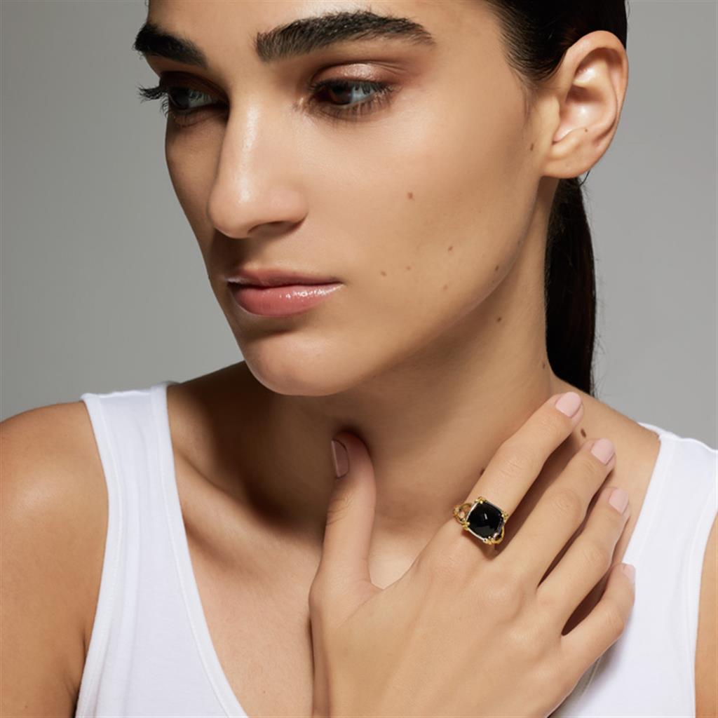 Konstantino - Black Onyx, Sterling Silver and 18K Gold "Anthos" Solis Ring