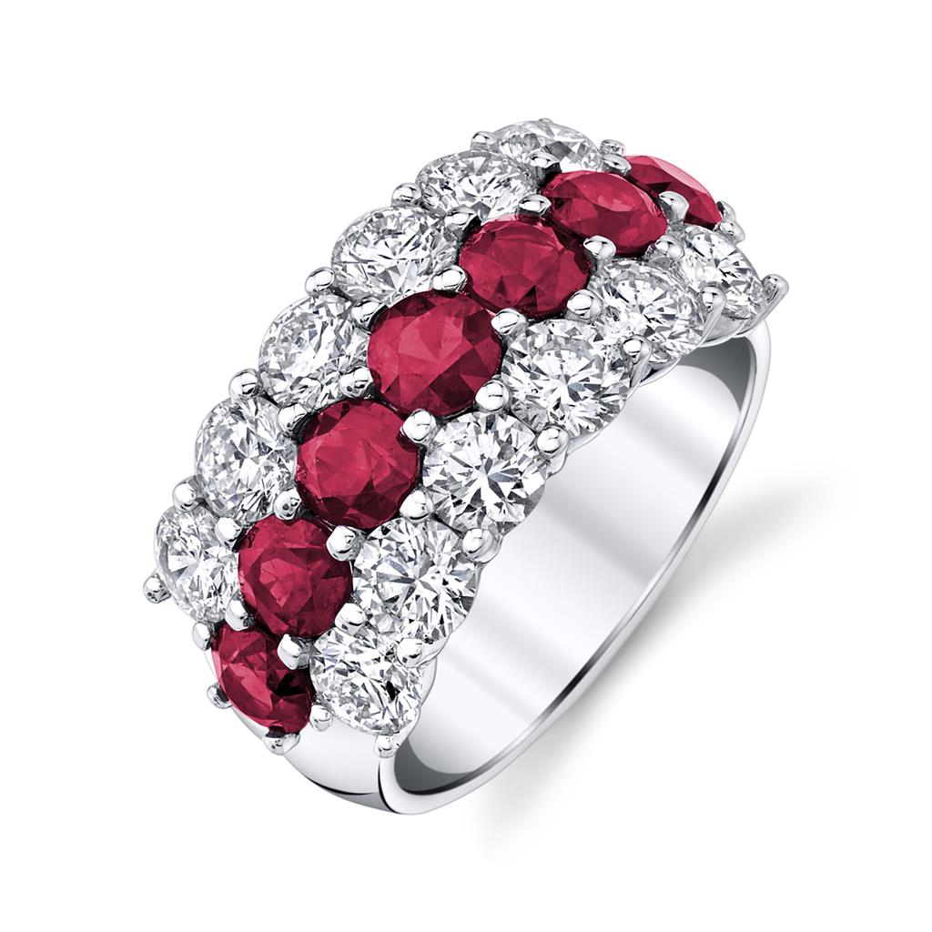 McCaskill & Company Signature Collection - Rubies, Diamonds and 18K Gold 3-Row Prong Set 1/2 Way Band Ring