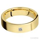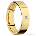 6 mm wide/Flat/14K Yellow Gold band with an arrangement of 1, .1 carat Princess Diamond stones in a Flush setting.
