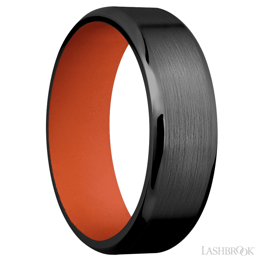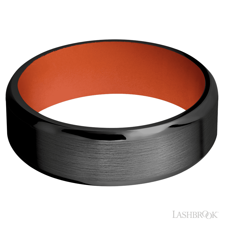 7 mm wide Beveled Zirconium band featuring a Hunter Orange sleeve.