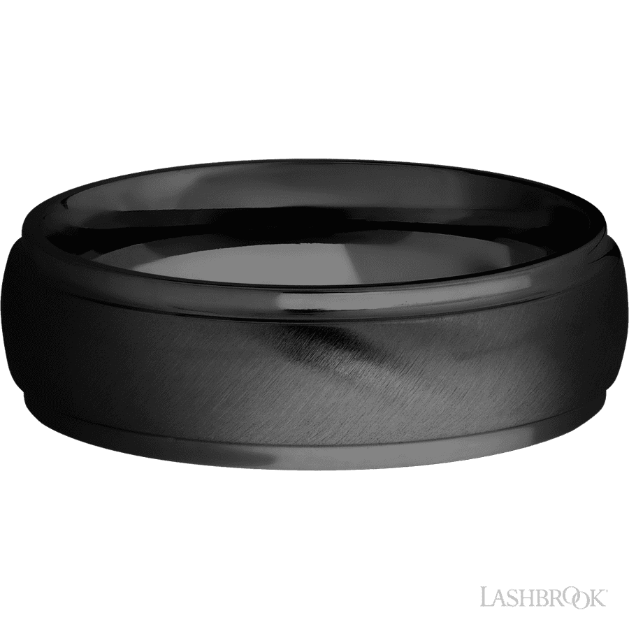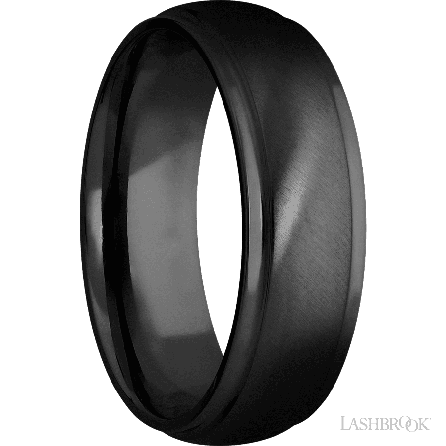 7 mm wide Domed Stepped Down Edges Zirconium band.