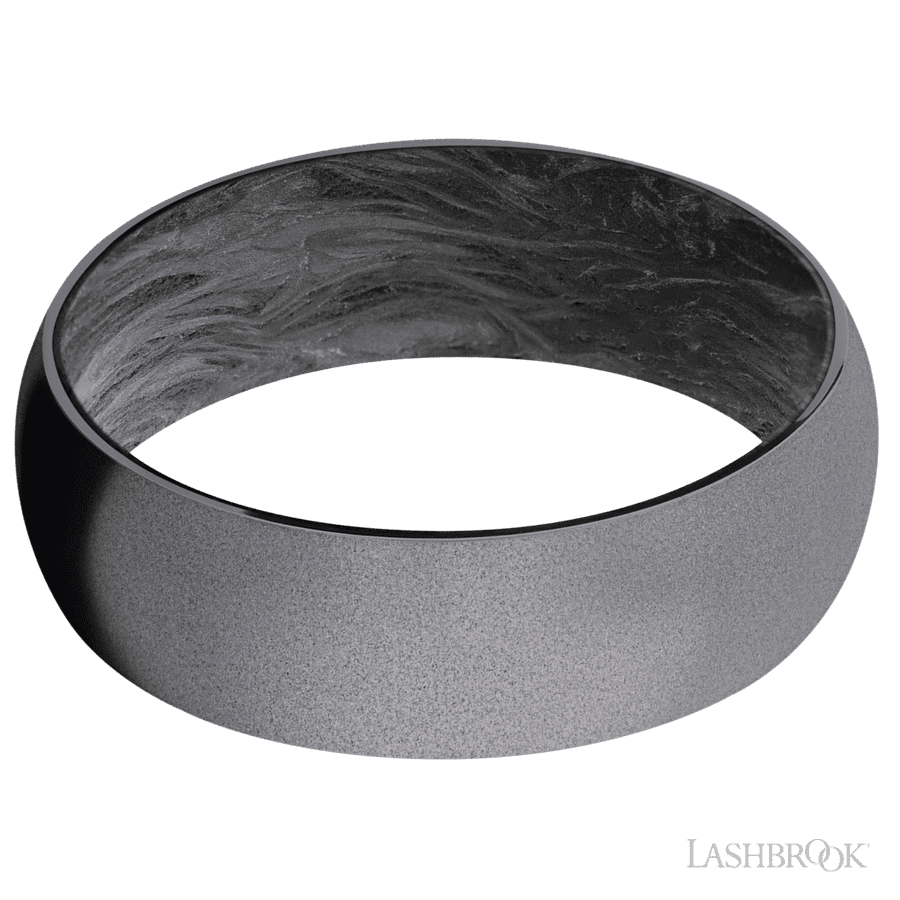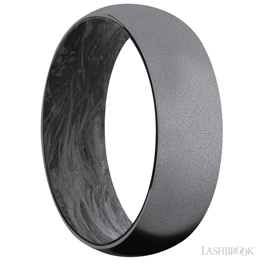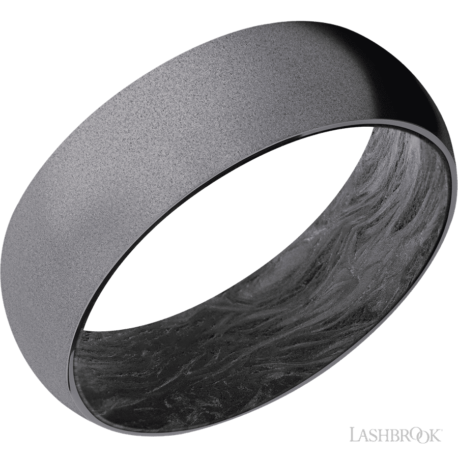7 mm wide Domed Tantalum band featuring a Forged Carbon Fiber sleeve.