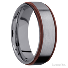 7 mm wide/Flat Grooved Edges/Tantalum band with two 1 mm Edge inlays of Crimson.