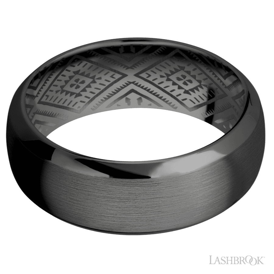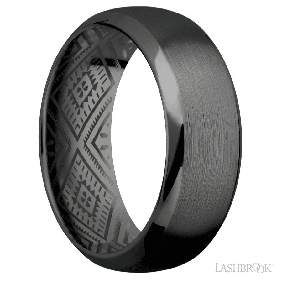 8 mm wide Domed Bevel Zirconium band.