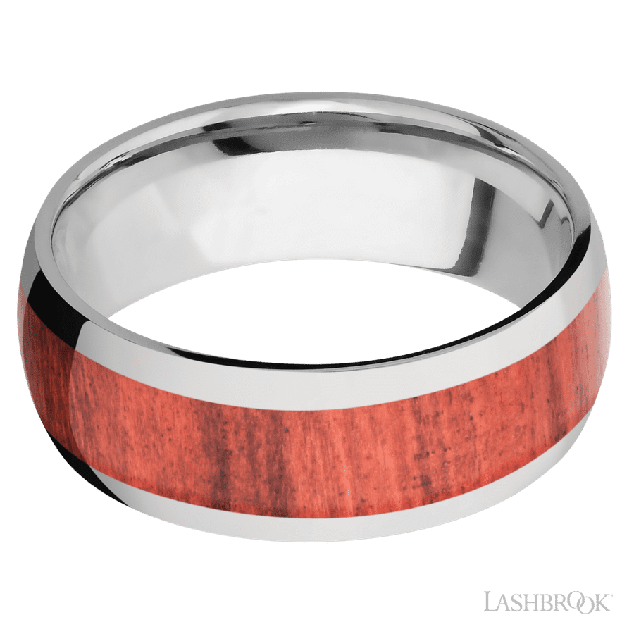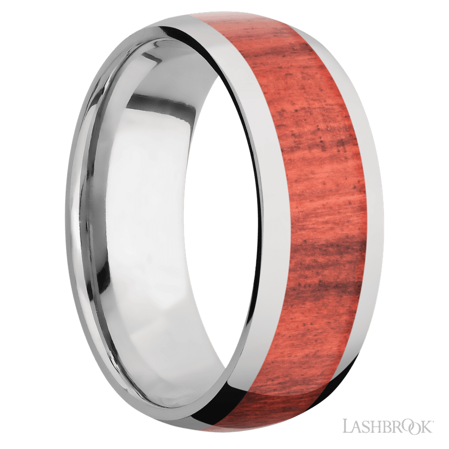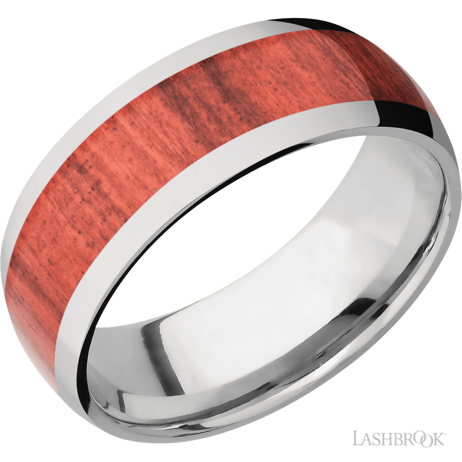 8 mm wide/Domed/Titanium band with one 5 mm Centered inlay of Red Heart.