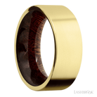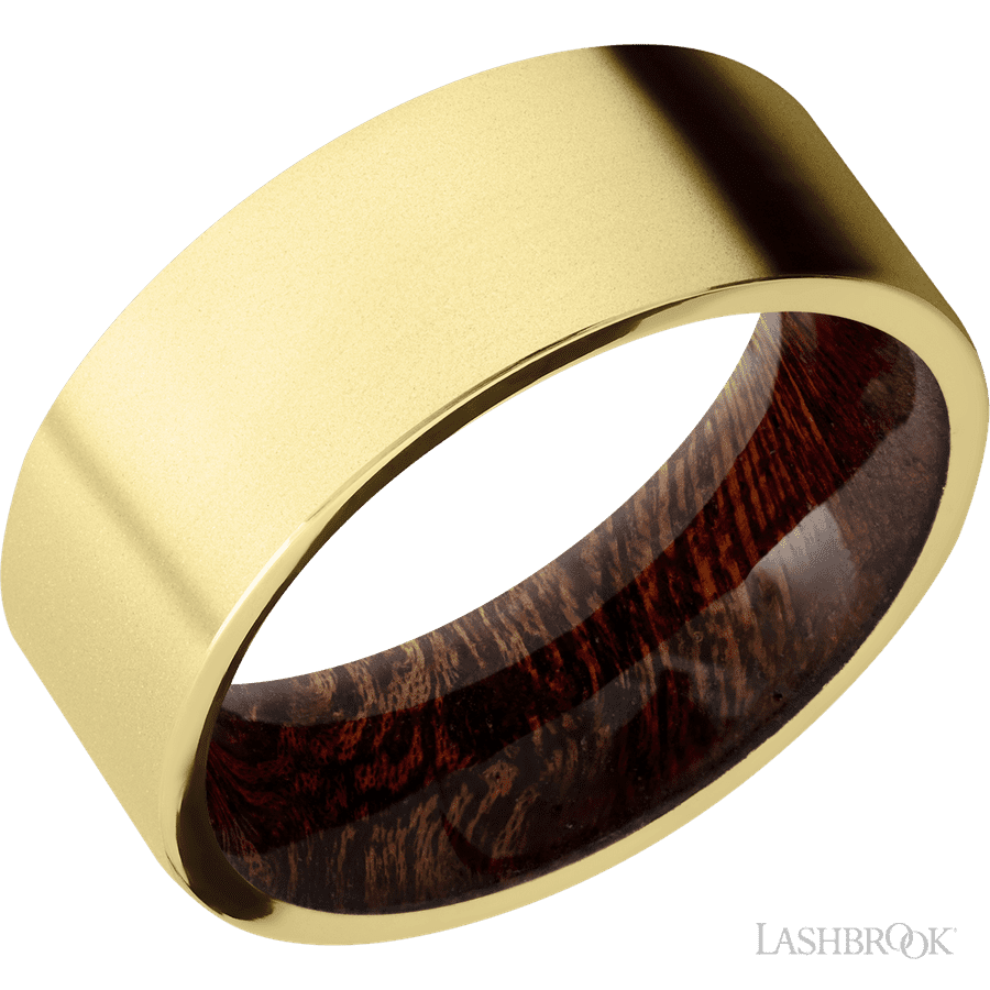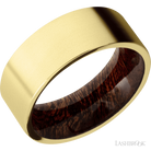 8 mm wide Flat 14K Yellow Gold band featuring a Sapele sleeve.