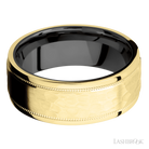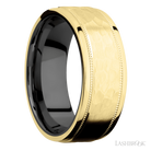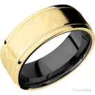 8 mm wide Flat Stepped Edges Milgrain 14K Yellow Gold band featuring a Zirconium sleeve.