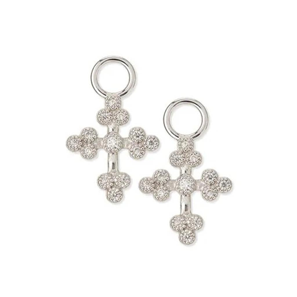 JudeFrances - Diamonds and 18K Gold "Provence" Cross Earring Charms