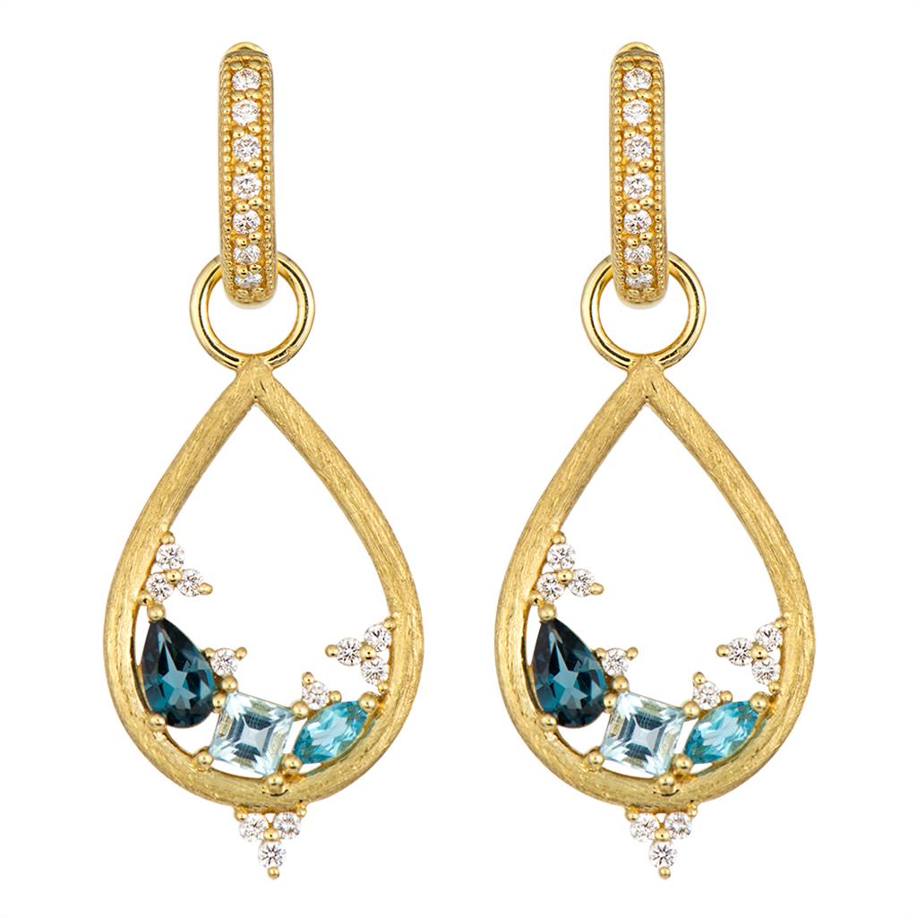 JudeFrances - London Blue Topaz, Sky Blue Topaz, Swiss Blue Topaz, Diamonds and 18K Gold "Provence" Teardrop Earrings