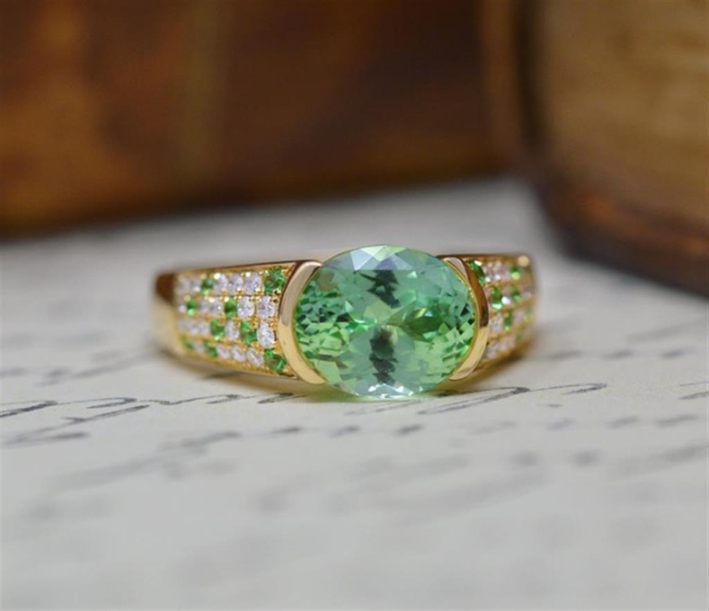 Kimberly Collins - Mint Green Garnet, Diamonds and 18K Gold Bezel Set Ring