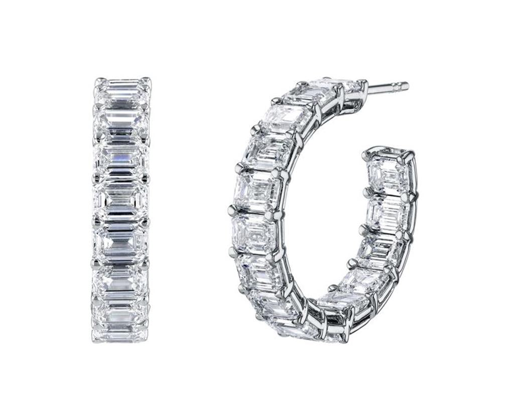 McCaskill and Company Signature Collection - Diamonds and 18K Gold East-West Shared Prong 3/4" Hoop Earrings