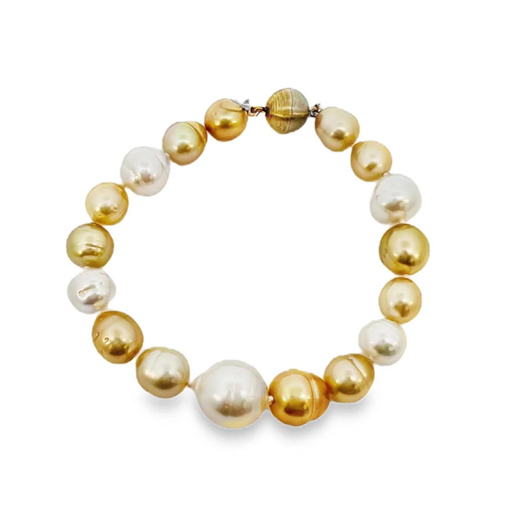McCaskill & Company Signature Collection - White and Golden South Sea Multi-Color Semi-Baroque 7" Bracelet with Sterling Silver and Gold Plated Magnetic 10mm Clasp
