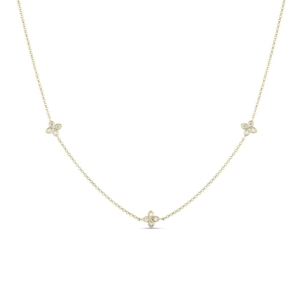 Roberto Coin - Diamonds and 18K Gold "Love in Verona" Three Station Flower 17" Necklace