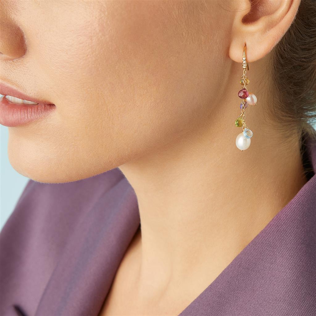 Marco Bicego - Mixed Gemstones, Pearls and 18K Gold "Paradise" Earrings