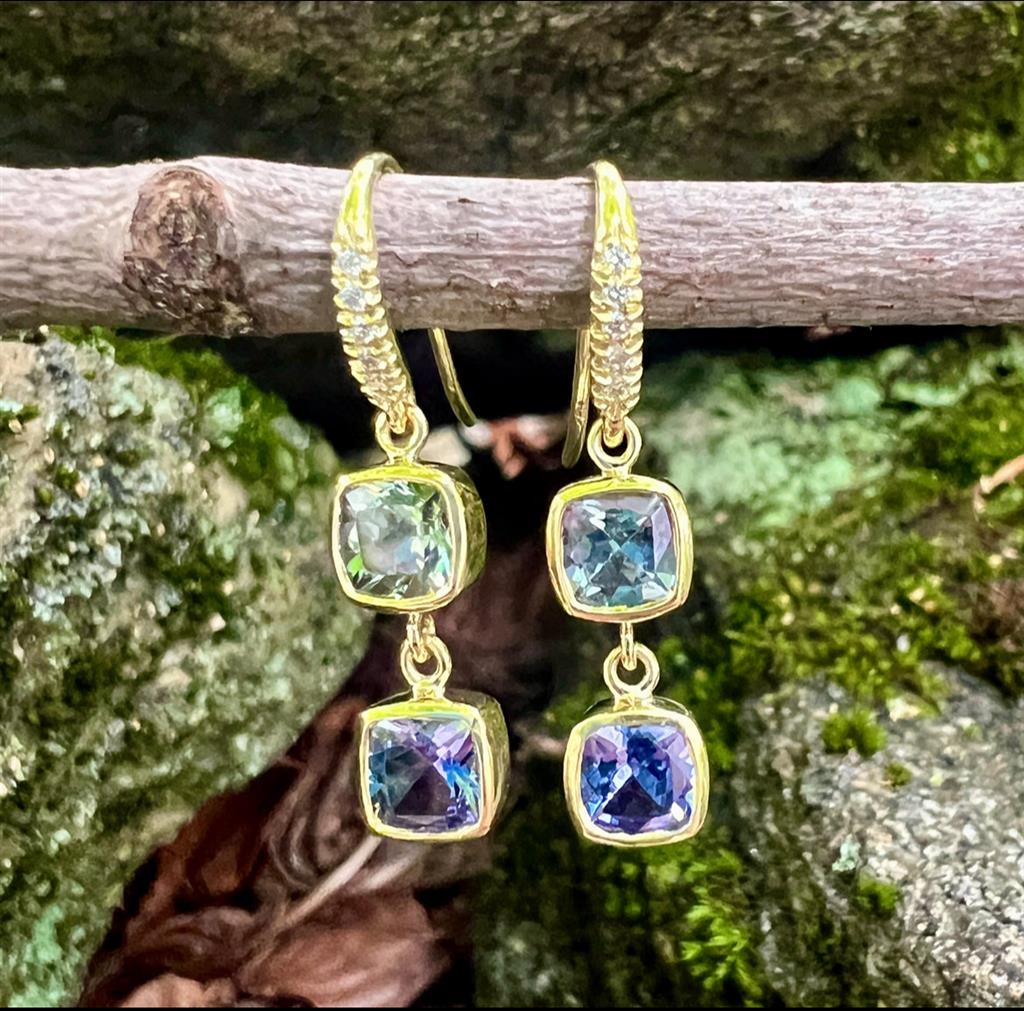 Lauren K - Cushion Cut Tanzanite, Diamonds and 18K Gold "Modern Joyce" Earrings