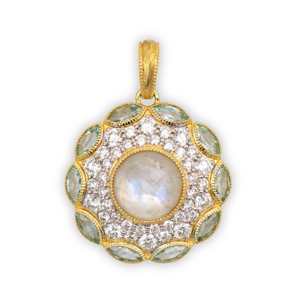 JudeFrances - Moonstone, Mother-of-Pearl, Diamonds, Sky Blue Topaz and 18K Gold "Moroccan" Trinity Stone Pendant
